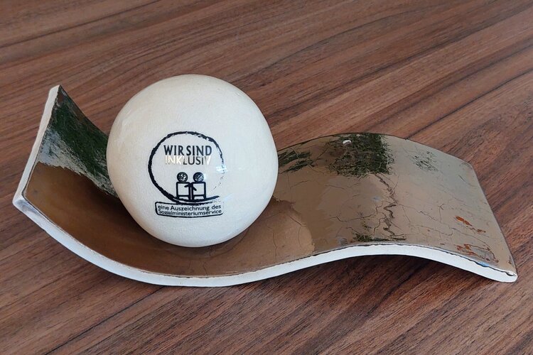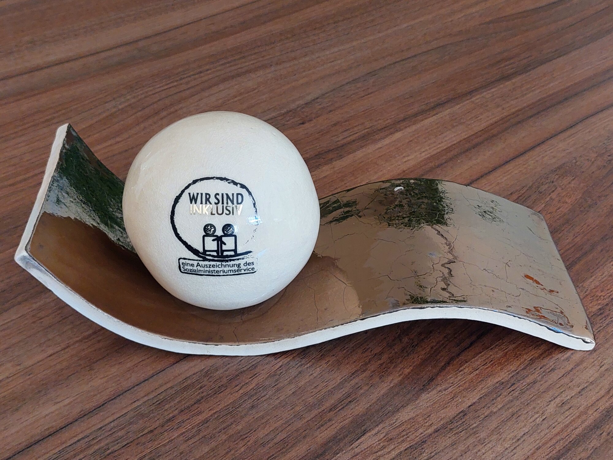 Das Logo „Wir sind inklusiv“ kann für den jeweiligen Auszeichnungszeitraum sowohl auf der Firmenhomepage, als auch als Aufkleber und auf dem Briefpapier verwendet werden. Erstausgezeichnete Betriebe erhalten zudem das zeitungebundene „Wir sind inklusiv“ Kunstobjekt.